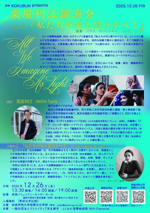 2025/12/26 学部主催 粟屋利江講演会__同時上映『私たちが光と想うすべて』